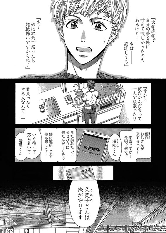 どうして篠田が優作の名を…!?動揺した久美子はその場から離れようとするが、詳しく話して欲しいと篠田に諭される。できれば隠したかった。 だが、「ひとりで抱え込まなくていい」という篠田の言葉に、久美子は…。