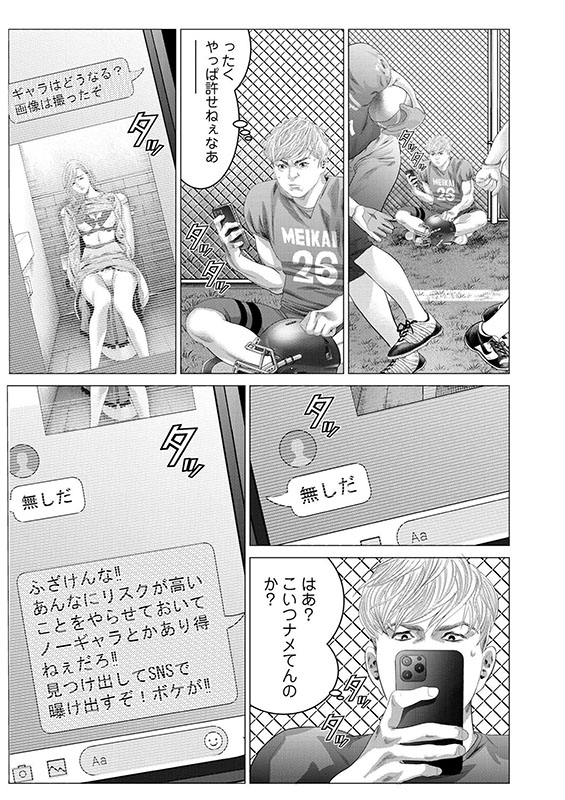 結婚を約束した彼氏・弘夢(ひろむ)がいるにも関わらず、友人・咲希(さき)と合コンにいそしむ主人公・由佳乃(ゆかの)。ある日の合コンの途中、イケメンチャラ男・康生(こうせい)と誰もいないカラオケボックスでいやらしいことをしていた。しかも、その状況は盗撮されていて、何者かによってSNSに流されてしまうのだった。