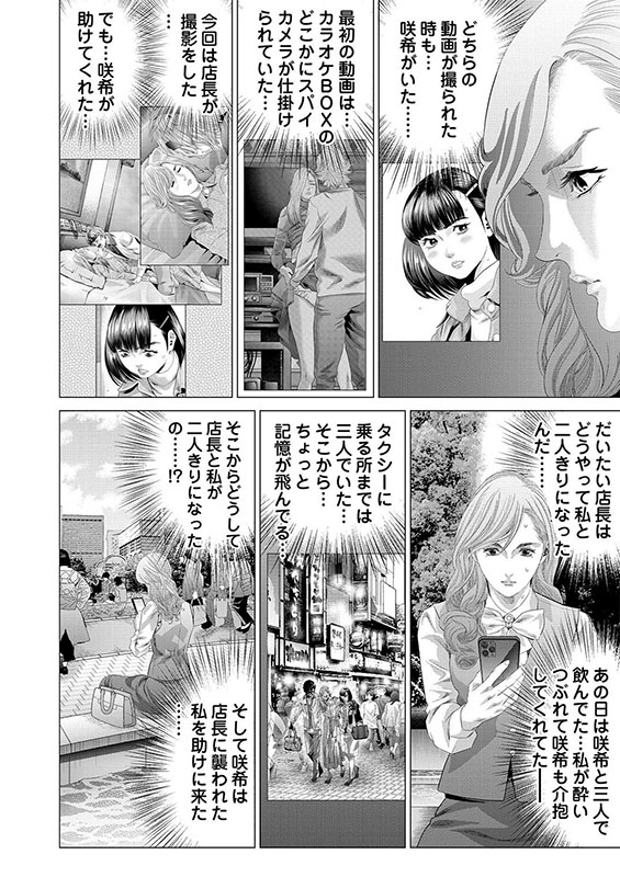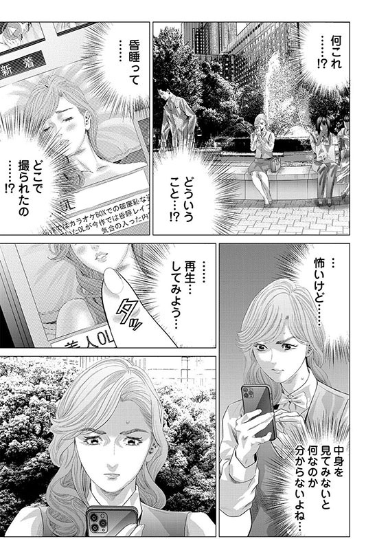 結婚を約束した彼氏・弘夢(ひろむ)がいるにも関わらず、友人・咲希(さき)と合コンにいそしむ主人公・由佳乃(ゆかの)。ある日の合コンの途中、イケメンチャラ男・康生(こうせい)と誰もいないカラオケボックスでいやらしいことをしていた。しかも、その状況は盗撮されていて、何者かによってSNSに流されてしまうのだった。