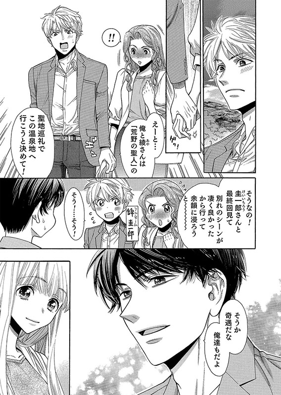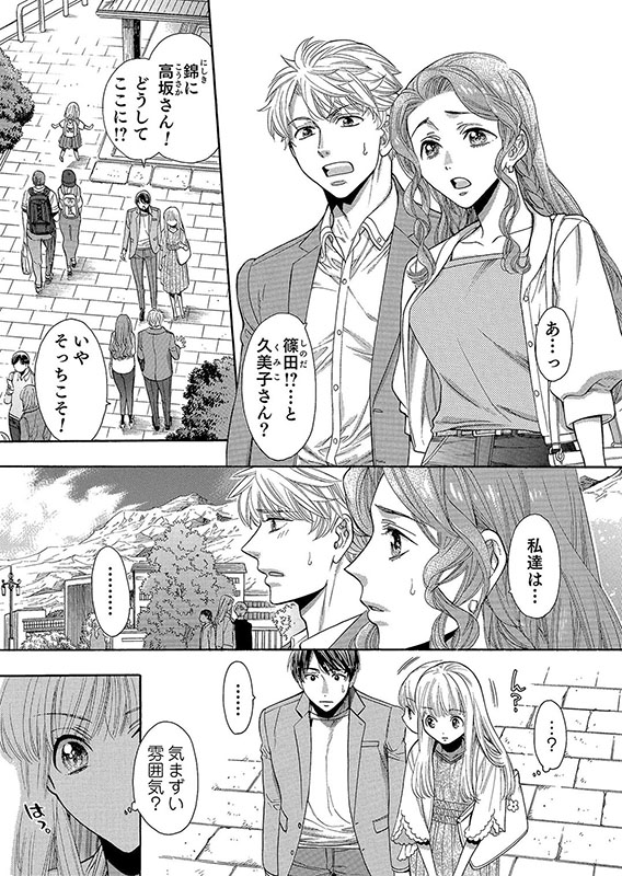 旅先で偶然にも錦と綾に出会った久美子と篠田。篠田達の態度から、綾がかつての篠田の恋人だと察知する久美子だったが、何故か不思議と心は落ち着いていた。それは、篠田に愛されていると確信出来るから…。 『触れて戸惑う恋なので』大団円!!