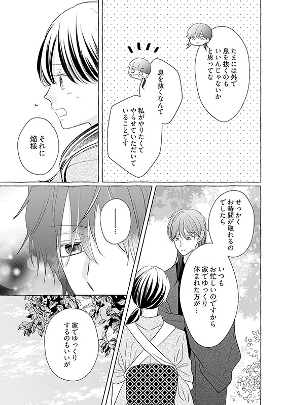 政財界の要人も通う高級料亭・花乃屋で働く菊花(きくか)は、ここの当主と愛人の子。優しくて大好きだった母親は体が弱く、早くに亡くなってしまった。そこからは義母と義妹からのいじめに耐えながら懸命に仲居として働く毎日。「何があっても人を恨まないで。ずっと笑顔でいれば大丈夫」母との約束を守る菊花。しかし義妹のいじめはエスカレートしていき、ついに夜の山奥に捨てられてしまう。絶望の中、菊花がたどり着いたのは「地獄の入り口」と町で噂されている大きな屋敷。しかしそこにいたのは美しく優しい男・焔(ほむら)だった。しかも何故か彼は菊花をすごく甘やかしてくれて――…!? 【恋するソワレ】