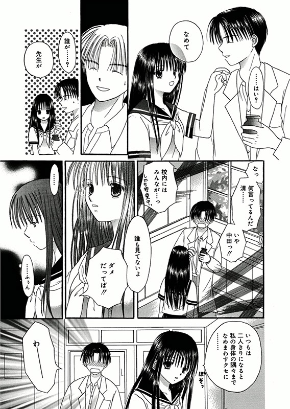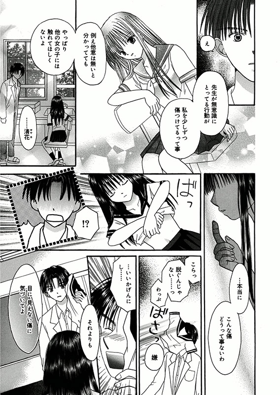 常にお互いを強く求め合う激しい恋に、やがて運命の時が近づいてくる…授業中に指先を切った清花を保健室に連れて行った木戸。応急処置をしようとする木戸に、清花は思いがけない行動に出る。