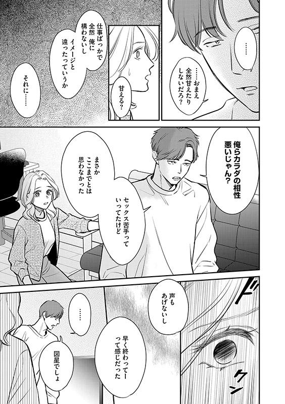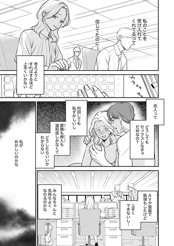 直近の彼氏には「不感症」と罵られ、悩む麻里奈に手を差し伸べたのは憧れの上司、加賀屋だった。