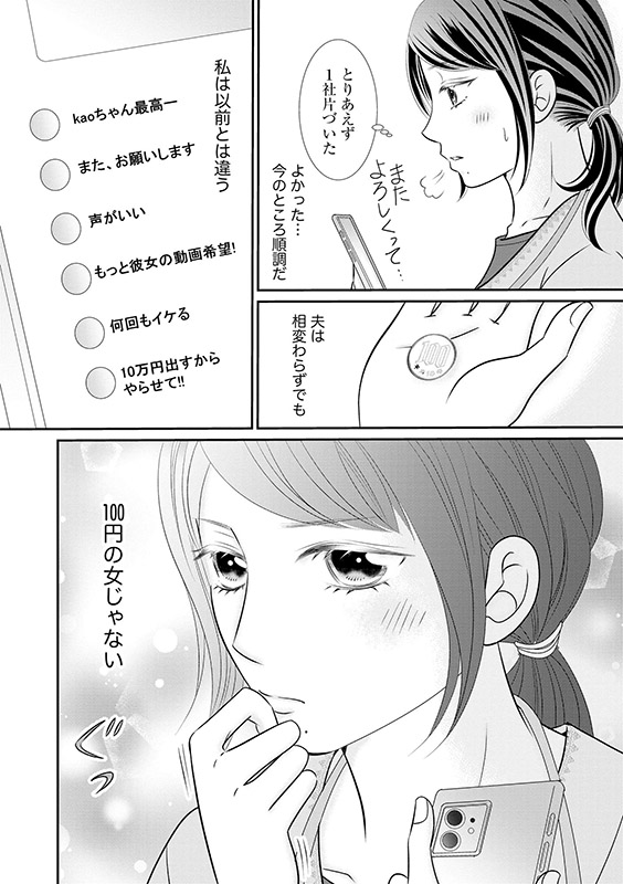 裏垢男子・AKIRAとのアダルト動画に出演し、お金を稼ぐ高槻薫。薫の動画は“かわいそうな人妻”人気があり、“ビジネスパートナー“としてAKIRAと良好な関係が続いていた。