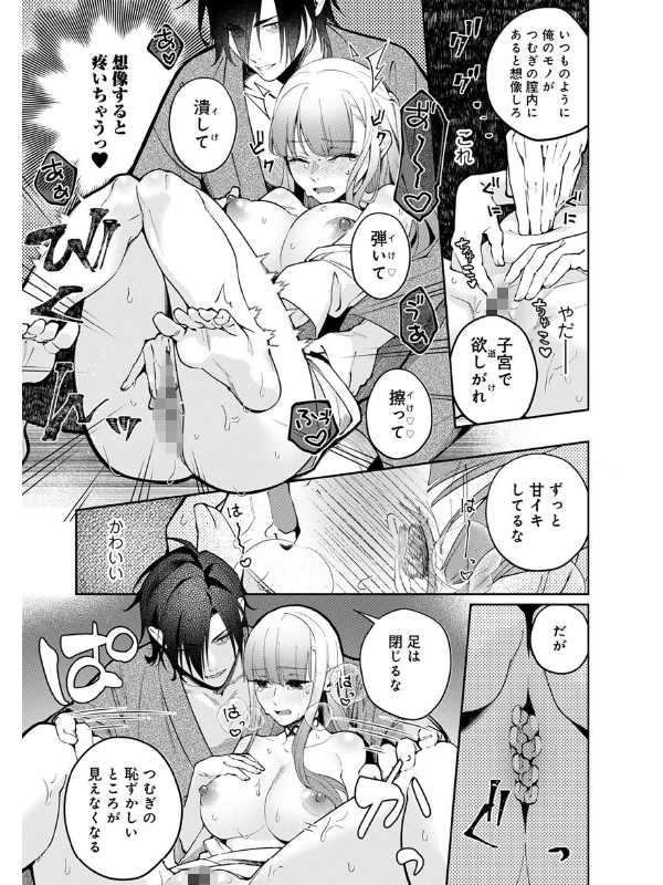 しかしそれでもと触ってこようとするつむぎに「俺がしなくとも、自分を慰める方法はもうわかっているのではないか?」と股を開かせる…。