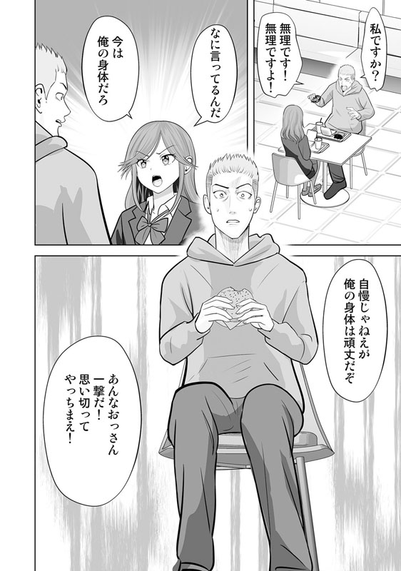 直哉は、女子の体を堪能しようと企むが、いざ服を脱いでみると香菜の体はどういうわけかそこらじゅう傷だらけで、気持ちが萎えて何もできなくなってしまう。しょうがなくその日は香菜として学校に行った直哉だったが、香菜をターゲットにするいじめっ子たちにトイレで暴力を振るわれる。