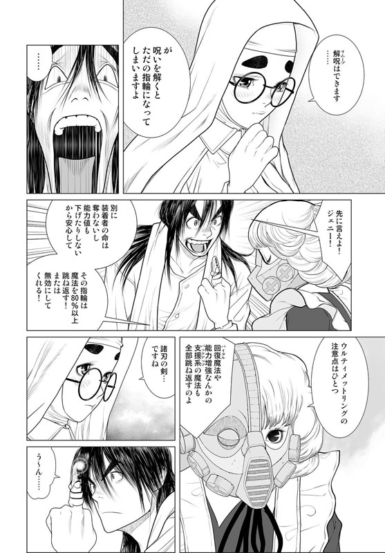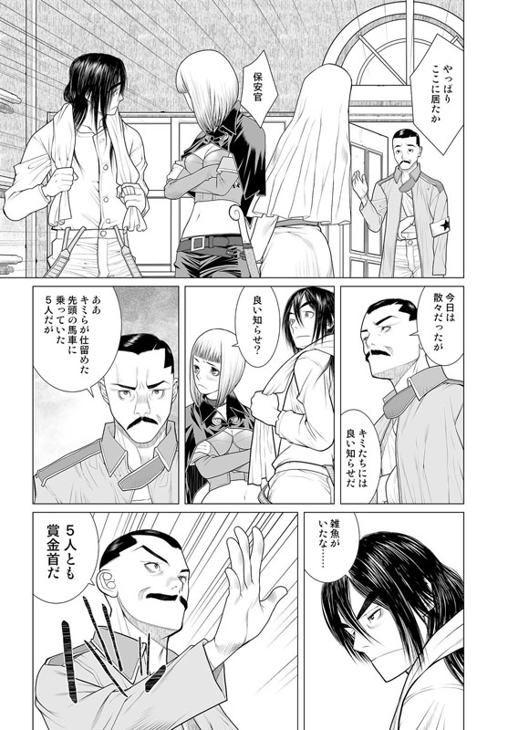 街はずれの廃墟内で男がふたり、剣をまじえようとしていた。片や鋭い突きが目にも止まらない速さの男、対峙しているのはその剣を鞘に収めたままの男……次の瞬間、稲妻のような一閃! 突きは空を切り、男の身体は真っ二つ! 生き残った男は大きなナタで○体の首をはねた……。