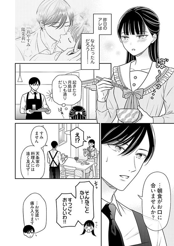 生まれてから今までずっと「天条家の娘」として恥ずかしくないようにと自由のない生活の中、お稽古漬けの毎日を過ごしてきた陽茉莉。しかし、そんな風に生きてきた陽茉莉の見合い相手に父は20歳も年上のおじさんを連れてきて…!?あまりの仕打ちについに家出を決意した陽茉莉だったが、唯一の心残りは○い頃からずっと側にいた使用人の月島と会えなくなってしまうかもしれないことだった……しかし、月島はそんな陽茉莉お嬢様の気持ちを汲んである行動に出る!使用人とお嬢様の主従恋物語、今開幕です。【恋するソワレ】