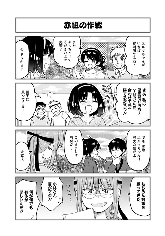 秩序を司るドラゴン・エルマがОL生活を満喫する『小林さんちのメイドラゴン』大人気スピンオフ!! 会社の運動会に参加したり、納税に興味を持ったり、地下アイドルに挑戦したり、同僚のダイエットに付き合ったり…すっかり人間さんの社会に溶け込みながら、美味しく楽しいOLライフを過ごすエルマの可愛さが溢れ出す第10巻!!