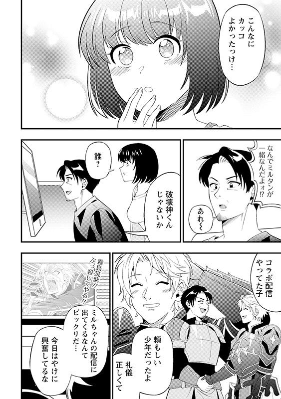 ある日、彼はダンジョンで有名配信者・綾月ミルと出会う。ダンジョンに突如出現する強敵「緊急モンスター」の配信が目当てのミルは、その強さに大苦戦!命の危機に陥る。