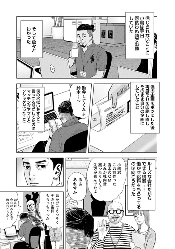 広告プランナーの鈴木は会社の上司である小嶋から苛烈なパワハラを受けていた。