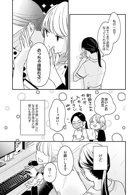 スパチャをして彼を推すことに生きがいを感じていたある日、「コウキ」と同じ声の「町田洸生」という患者の担当になる。