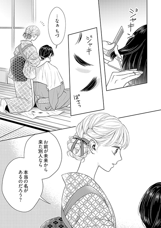 店長のイジメに耐えながら、美容師の仕事を頑張っている清水月奈(しみず るな)。ある夜、自分ソックリな顔をした着物姿の女・千鶴子(ちづこ)が映る鏡の中に吸いこまれ、過去の世界に…!?!?