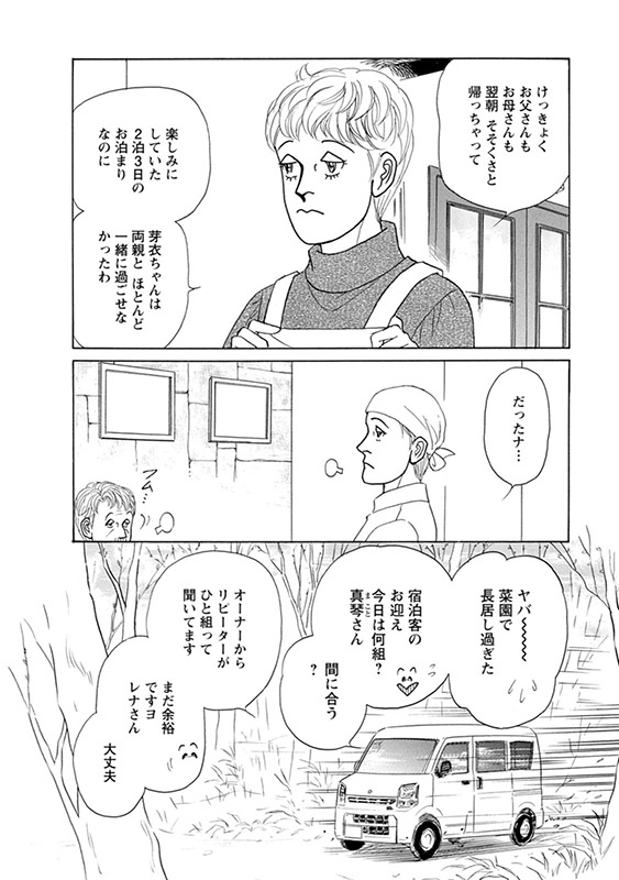 北の大地から贈る、愛と感動のハートフル・ストーリー「風のペンション」。 冬のシーズンが終わり、のんびりムードのペンションやましなに、“パパンのパン”一行が、久しぶりにやって来た! だが、娘・花歩の不参加に、僚平はへこんでいる様子で……。 表題作の『明日へ続く道』ほか、『春風と小鳥』『想いは夏色』『幸せの姿』、さらに特別エッセイコミック『ネコ騒動 ベタベタになりました…!!』を収録した、2025年最新刊!