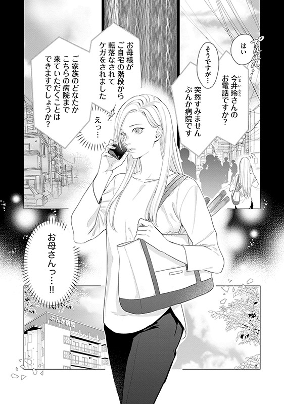 母親がケガをしたと聞いて急いで病院に向かった玲。