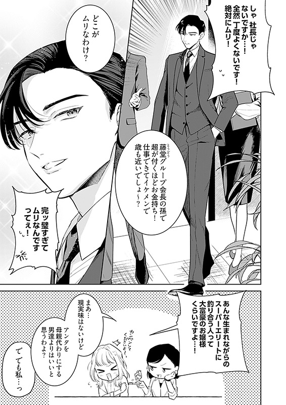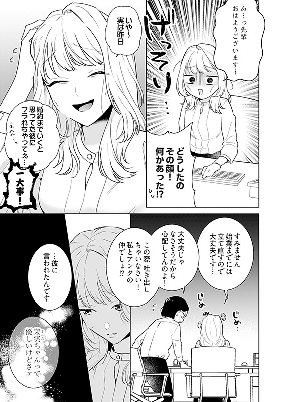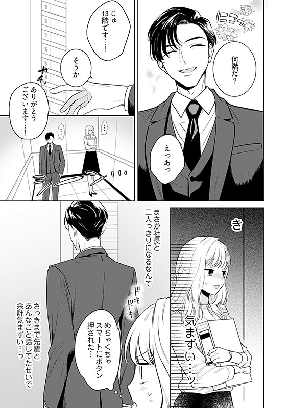 婚約直前のカレに「かーちゃんみたいで萎える」とフラれたOL・茉実(まみ)は、絶望しながらも何とか出社しエレベーターに乗り込む。しかし、地震でエレベーターが緊急停止!乗り合わせた社長・藤堂(とうどう)と二人きりに…