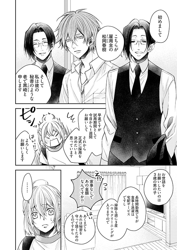 ドン引きする由羽だったが、天使のように可愛い○○・壮馬と高額報酬に釣られてバイト継続を決意。しかし、ふとしたキッカケで松岡が人気上昇中のイケメン俳優だと知り――?