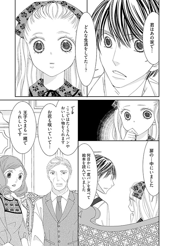 そんな毎日を過ごしていたある日、老朽化で地下牢の扉が壊れてしまう。突如、開けた世界にダルシーは一歩ずつ踏み出していく。初めて見た世界、触れた花、出会ったマーロン王子…。ダルシーはマーロン王子の優しさに触れ、少しずつ彼に惹かれていく。