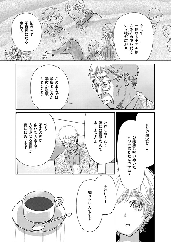 とある中学校で校長を務める知人から依頼を受けて訪れた中学校。 3年3組の生徒の間でトラブルや事故が続き鑑定を依頼されたのだ。 まずは教室に向かったマリアは「おぞましい空間」と感じる教室に安置された“あるもの”が気になって──!? 実在の癒やし系霊能師・音羽マリアが視た心霊案件をコミカライズした全4作にを収録した待望の作品集!!