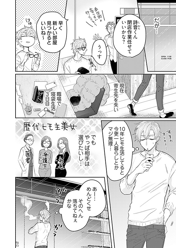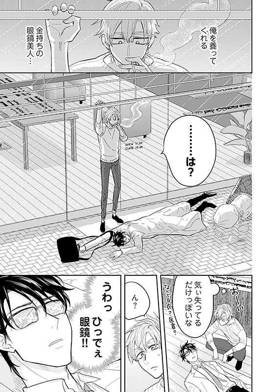 【描き下ろしおまけ漫画を新たに収録】眼鏡フェチな眼鏡職人兼ヒモ男・詩音(しおん)は、寄生していたメガネ美女宅を追い出され、職場で寝泊まり生活中。ある夜、店の前で行き倒れていたビン底眼鏡のモサいリーマン・天野(あまの)を拾った詩音。ダサい眼鏡が許せなくて、試作品を装着させたら…なんだかムラムラくる色っぽいインテリメガネに大変身!!