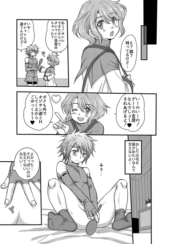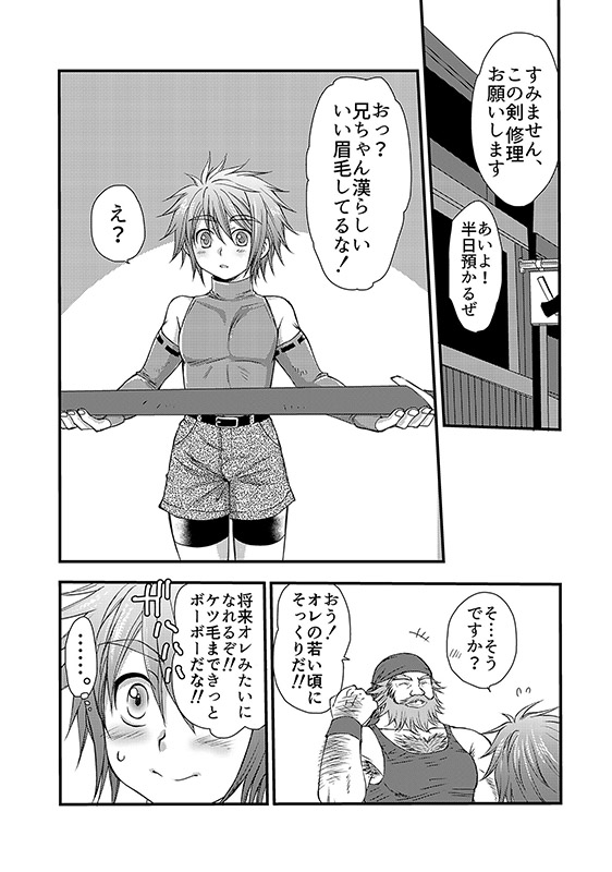 鍛冶屋のオヤジに太眉を指摘され、もしかして体毛も濃いのかも…?と不安になった少年剣士アッシュ。