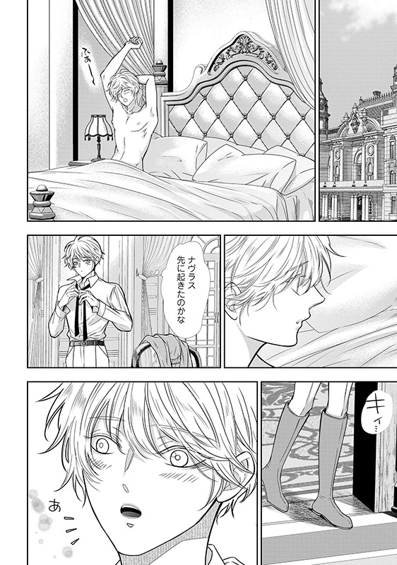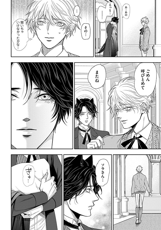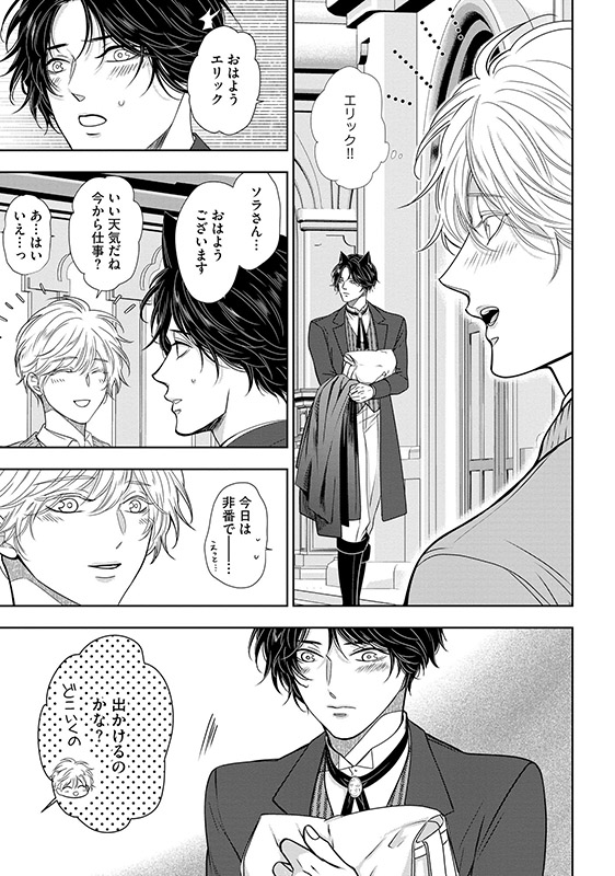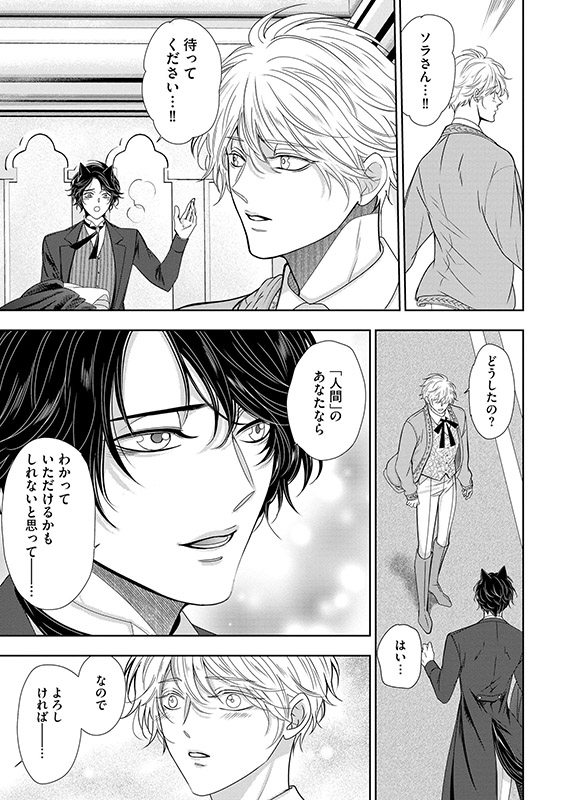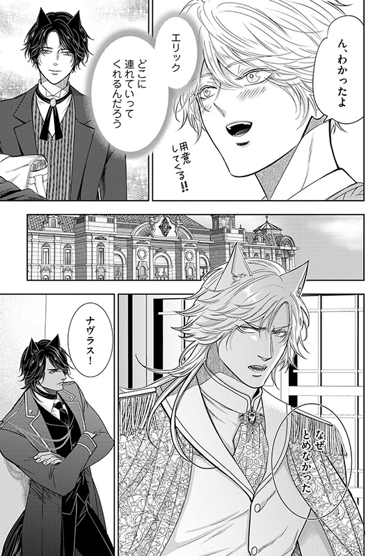狼人ライカンスロープが統治する国で、ひっそりと暮らしていた天涯孤独な青年・ソラ。 働いている娼館に訪れたナヴラスという獣人に身請けされ、紆余曲折を経て、ナヴラスと身も心も結ばれ、伴侶として幸せな日々を送っている。 そんな中、ナヴラスと旧知の仲であるアイゼンハルトに招かれ、二人は北の地を訪れることになるが……!?