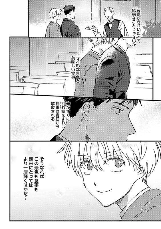 ある日の送別会の帰り、酩酊状態の鶴来をホテルへ避難させると