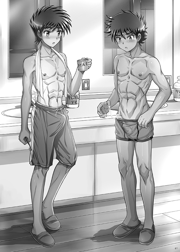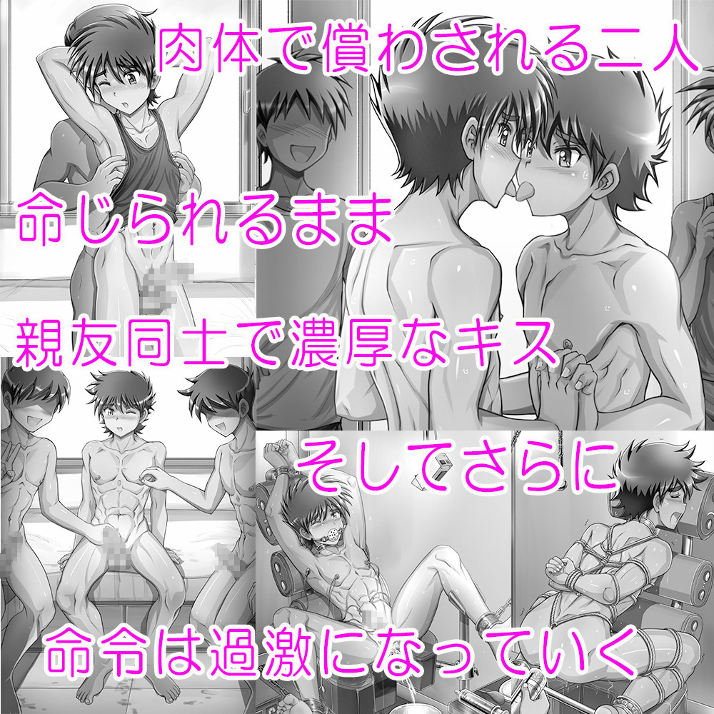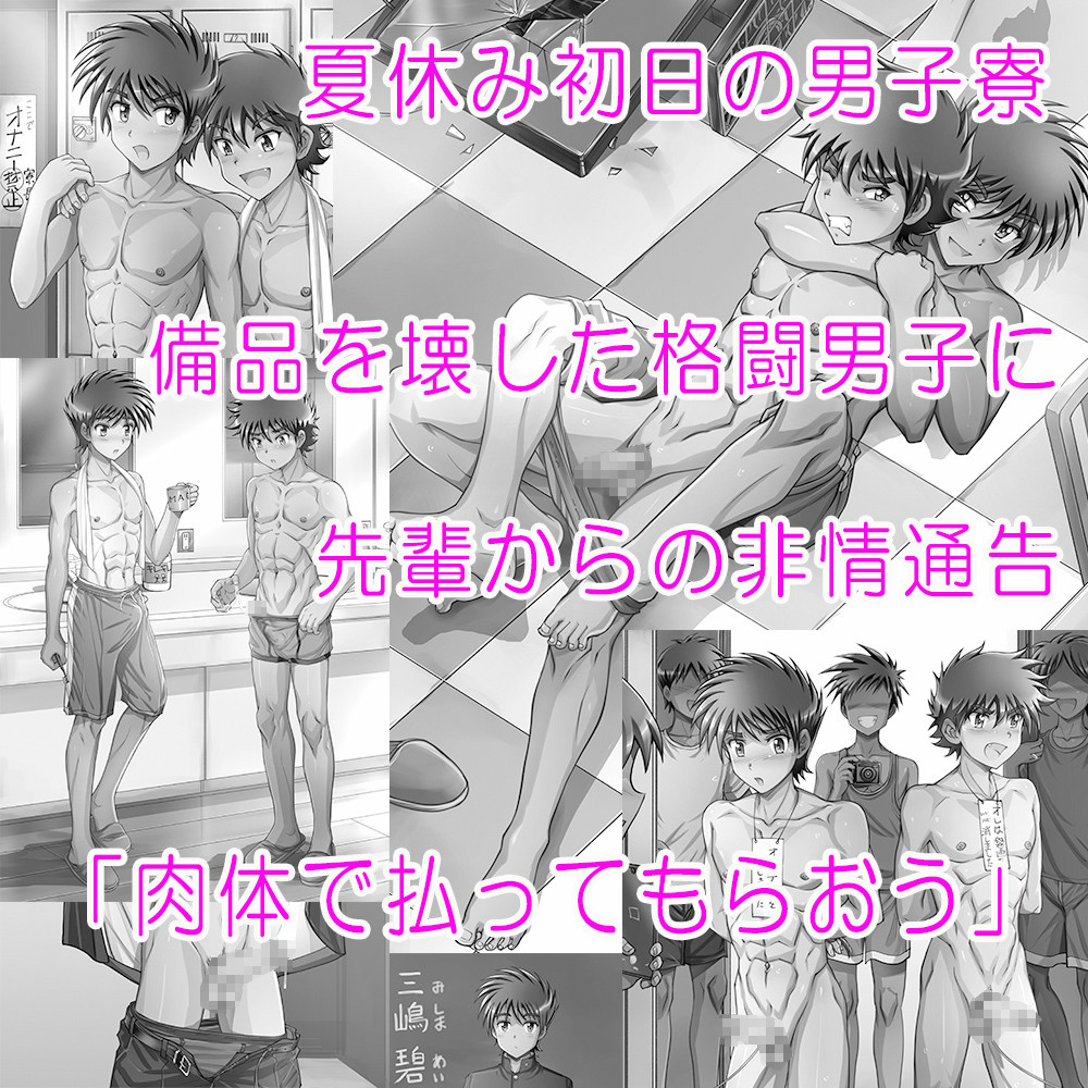 男子寮の備品を壊しちゃった筋肉少年2人が、その肉体で支払わされます。(筋肉少年を剥いて嬲ります)