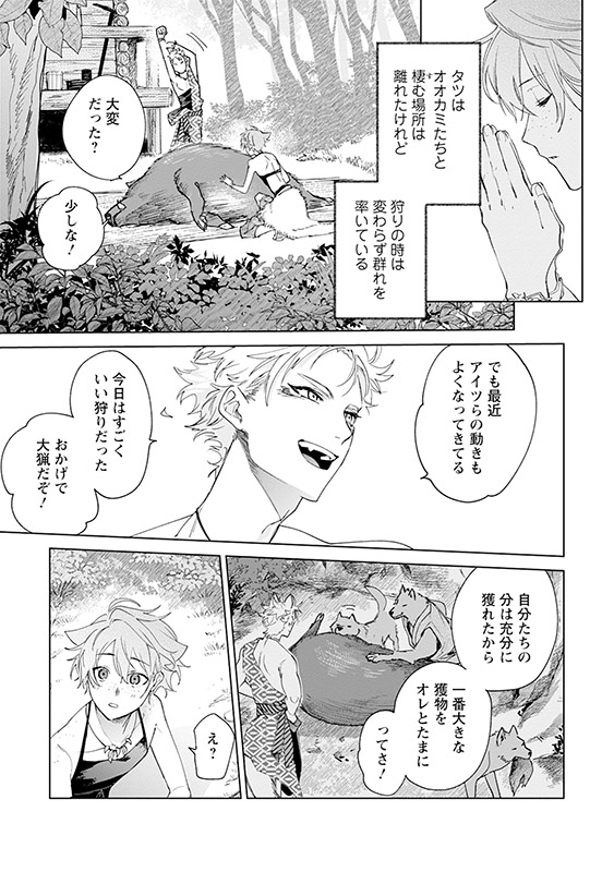 狼の群れで育った青年・たまと、狼のタツは、群れの仲間たちに祝福され、「めおと」として一緒に暮らしている。
