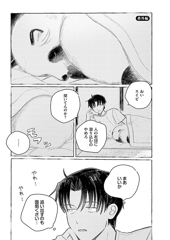 ある夜、スイビが誠一の布団にもぐり込んできていた。