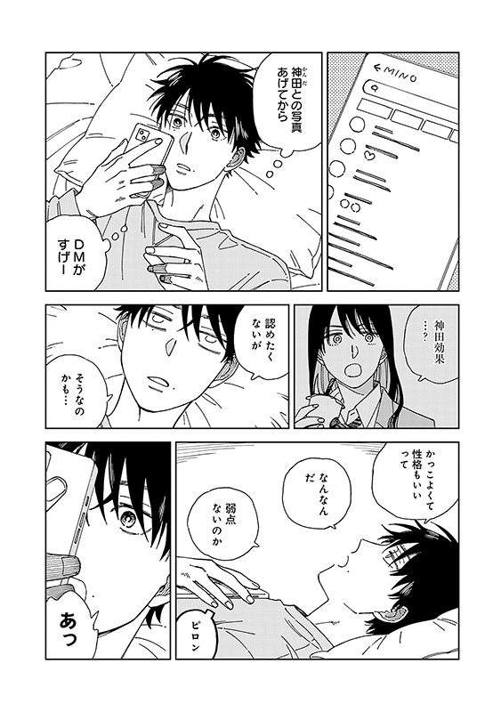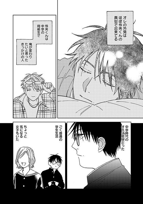 SNSでずっと憧れていた怜央の投稿を見て、中学時代の地味だった自分を振り返っていたみのる。