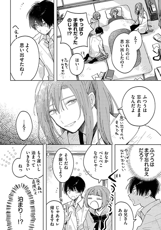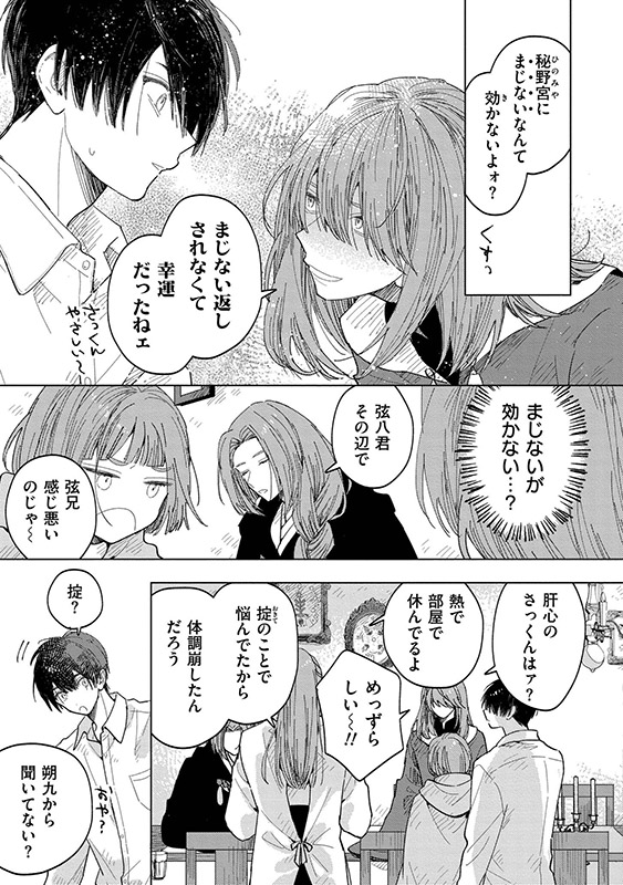 倒れた朔九(さく)を家まで送った陽凪(はるな)。