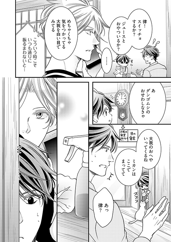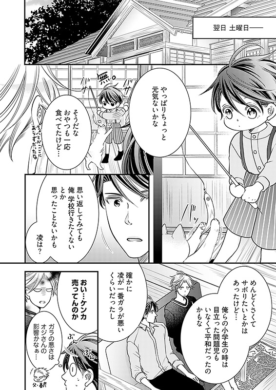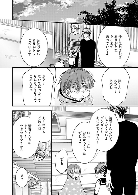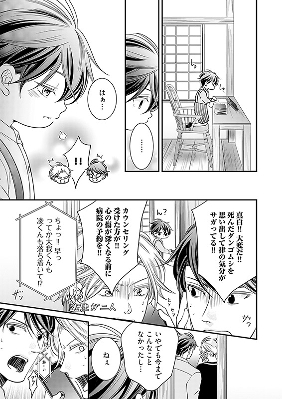 料理上手で○○好き。結婚願望もあるのに【とある理由】で、いまだ独身な三十路の建築士・宮野凌(みやの りょう)。ある日、火事で自宅マンションが水浸しになってしまった親友・大我(たいが)の頼みで、大我が引き取った甥・律(りつ)と3人で同居生活することに。かわいい律の世話を焼くのは楽しいけど――学生時代から凌を想い続ける大我の過剰なスキンシップに振り回される毎日で!?!?