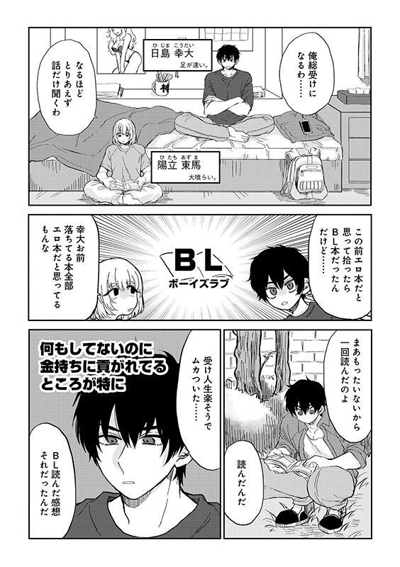 働きたくない、他人の金で楽したい。女性の繊細なメンタルサポートなんてできる気がしない。そんな幸大は、たまたま拾い読みしたBL作品から天啓を得て、「金持ちの男の金で楽してぇ」から総受けになることを決意。