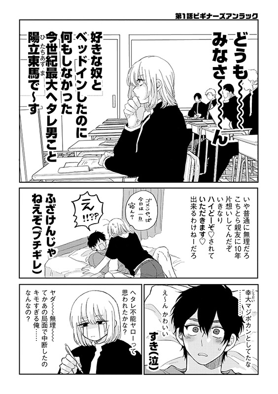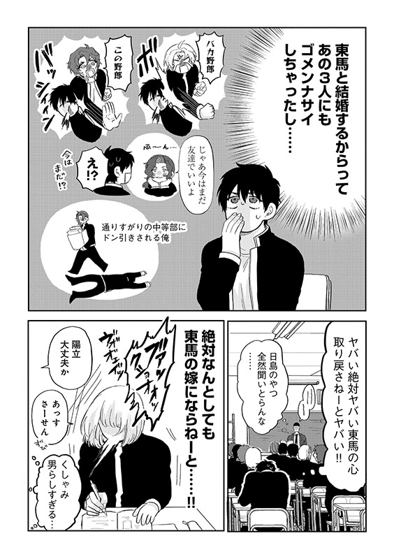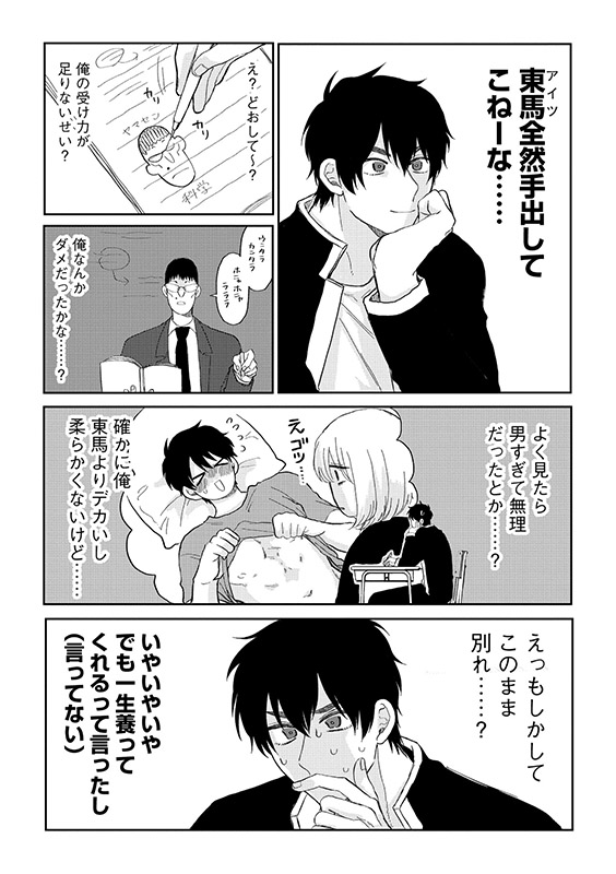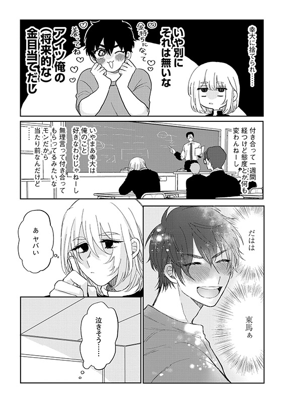 彼に対し○いころからこじらせた恋愛感情を抱いていた親友の陽立東馬(ひたちあずま)の告白をうけ、晴れて恋人関係となった。