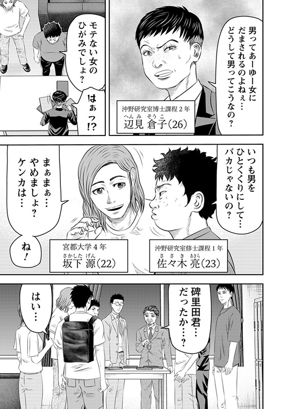 翌日、修が目を覚ますと、研究室のメンバーがひとり行方不明だと知らされる。
