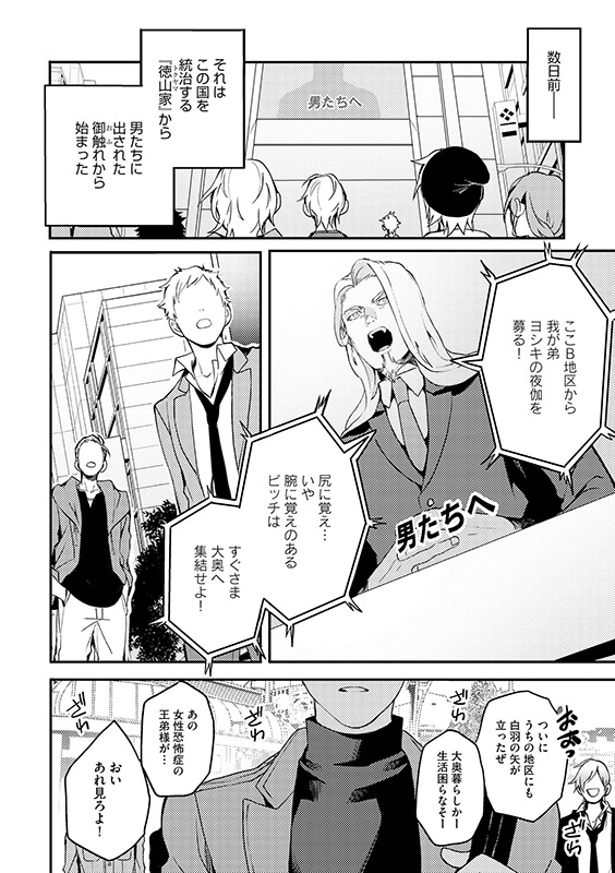 ある日、この国を統治する徳山家の次男・ヨシキの夜伽本命になれば生涯安泰を約束されると耳にした壮馬は、
