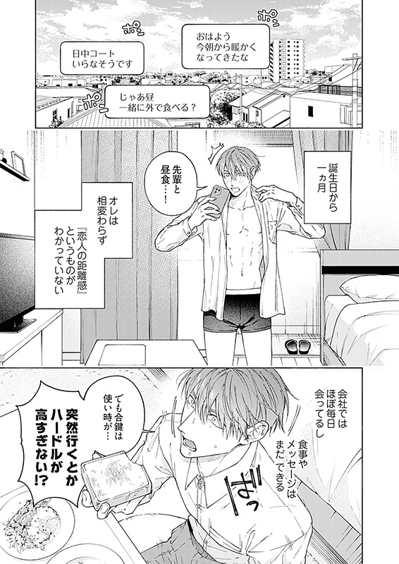 じつは八ツ橋は生粋の男声フェチで、『三度の飯よりASMR』を地で行く男。先輩の低くて甘い声があまりにも理想すぎて、事故で録音した声を聴いていたら身体が反応してしまい…!?【フィカス】