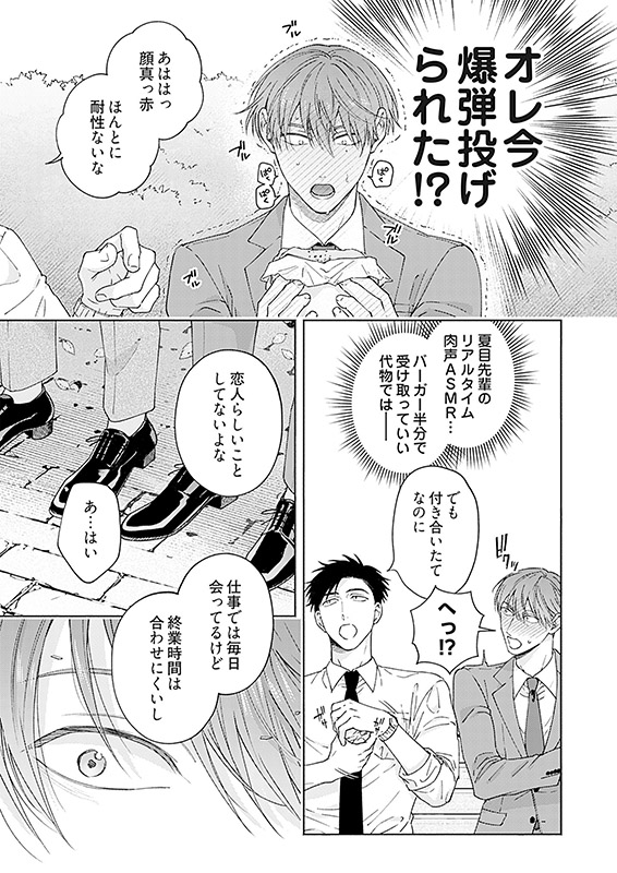 道を尋ねれば通報され、迷子に声をかければ不審者情報のアラートが出る。心は繊細なのに顔面凶器なリーマン・八ツ橋。そんな八ツ橋を気にかけてくれるのは優しい夏目先輩だけで、だからこそ絶対に言えない――先輩の声で、あらぬ妄想をしてるだなんて…!
