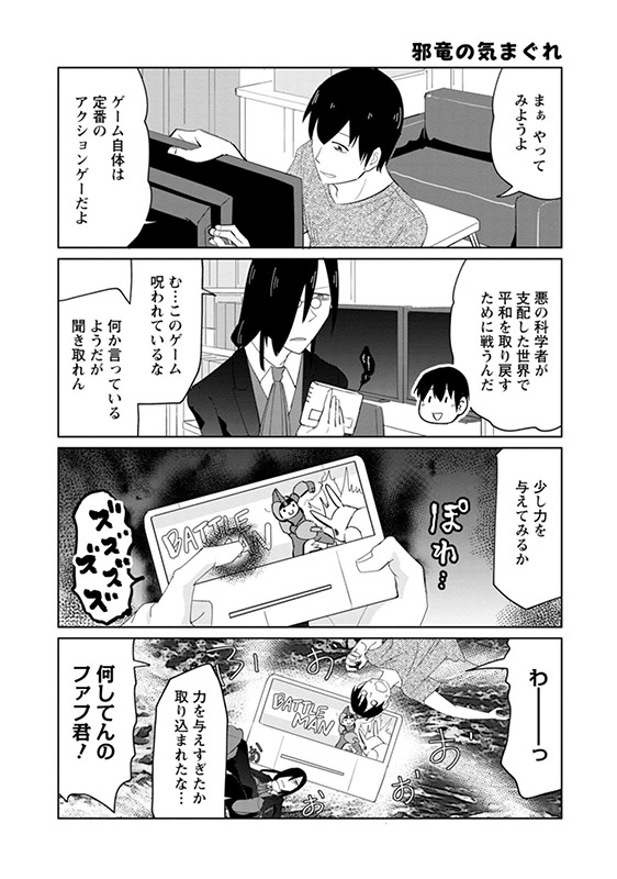 『小林さんちのメイドラゴン』スピンオフ!! 主人公は滝谷の家に居候して、ゲーム三昧、引きこもり生活を謳歌する呪いの邪竜・ファフニール!! 呪いのゲームから抜け出せない!? 驚きの不眠解消法!? 二人で地下アイドルを全力応援!! ゲームもアイドルも人間社会のオタ活を存分に堪能する邪竜と一緒に楽しむ社畜・滝谷のお篭りオタクライフ!!