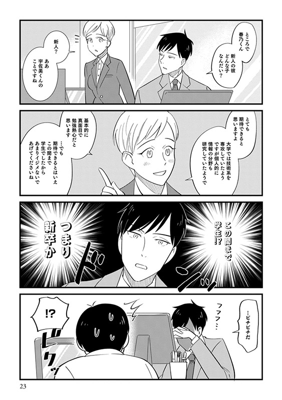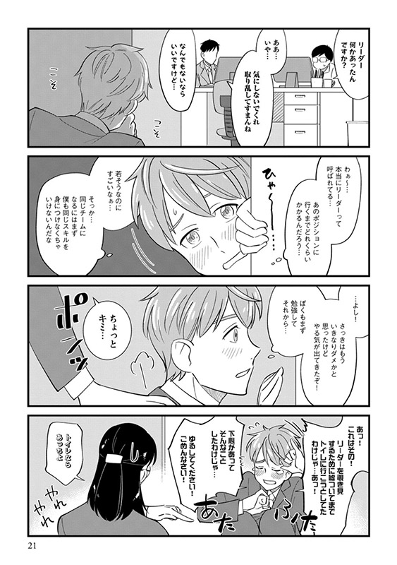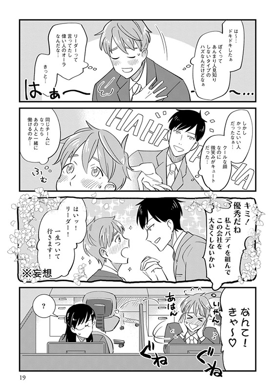 仕事も恋も一生懸命な主人公が頑張るオフィスBL四コマ漫画登場!!