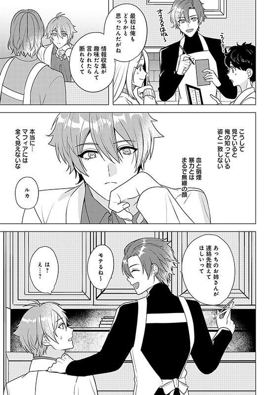 マフィアのカポとして裏社会に君臨する一方、カフェの店員として女性を虜にするレオ。そんな彼の二面性についていけないルカは、”処分”の光景を目撃したことをトリガーに、凄惨な記憶を思い出す。 そこで、冷静になるため放っておいてほしいと伝えたところ、レオの逆鱗に触れ抵抗もむなしく乱暴に○されることに──? ※ comic picn vol.69 収録作品