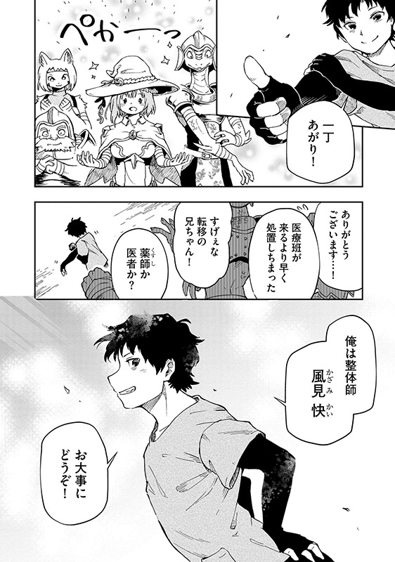 整体院でのワンオペ連勤でフラフラだった整体師の風見快は、魔法の暴発で誤って異世界に召喚されてしまった。