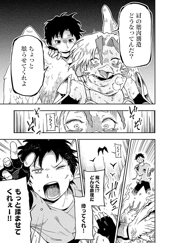 …いや、そんなことはどうでもいい!! 何あの生き物は!? キミは鳥っぽいけどその筋肉量でどうやって飛んでるの!? あぁまってちょっと触らせて!!