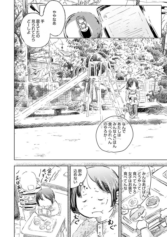 様々な理由で生きづらい日々を送る人々を描いた読切4編を収録。