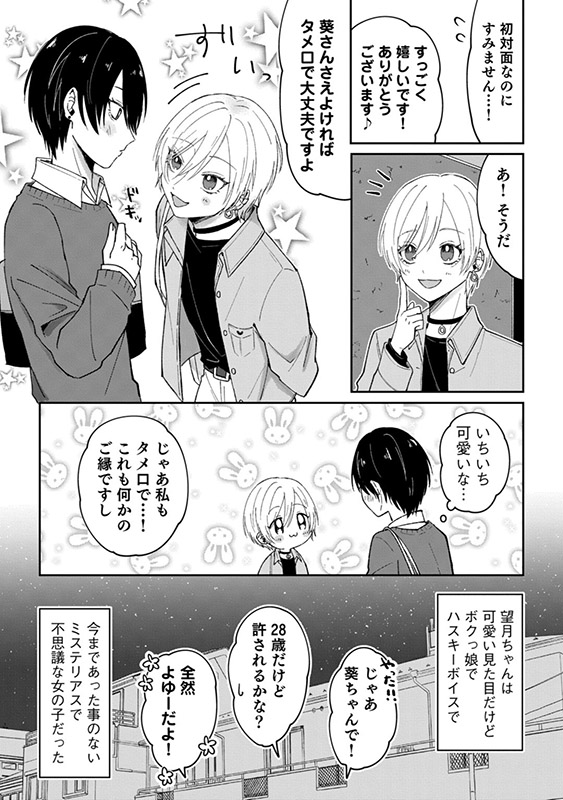 読み切り「私のかわいい望月くん」より年下の男前ジェンダーレス男子×実は少女趣味なクールOLの二人が再登場!二人の出会い編が新連載でスタートです!