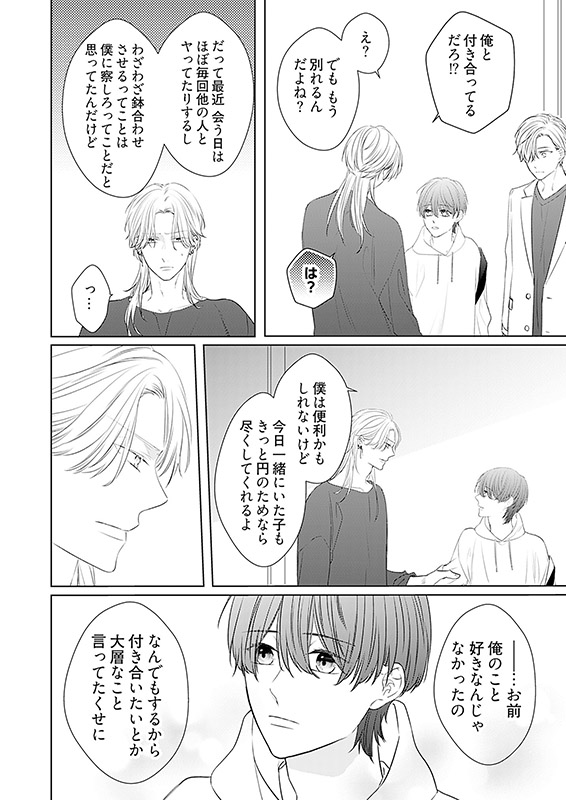 大企業の社長令息でモデルもしていて「来るもの拒まず」なモテ男・来栖円(くるす まどか)を見つけたのは、大学の入学式。円に一目ぼれしてしまった恵南氷緒(えなみ ひお)は、思い切って告白して、交際することができたけど――円の浮気癖に悩まされる氷緒の前に、彼と似たビジュアルをした優しい雰囲気の男性が現れて…!? 【フィカス】