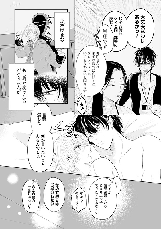 ケイとの距離感が近いことに警戒する大志に向って、「嫉妬してるんですよね?じゃあ…奪っちゃおうかな」と金成が挑発してきて――