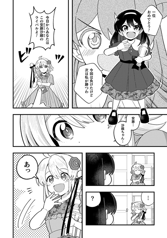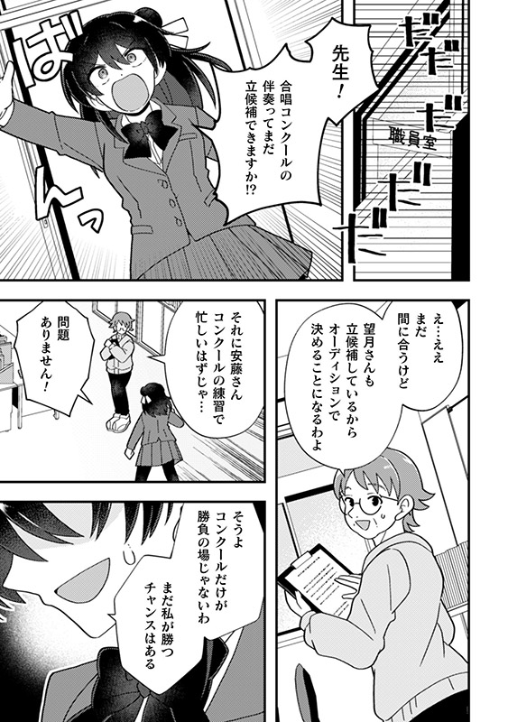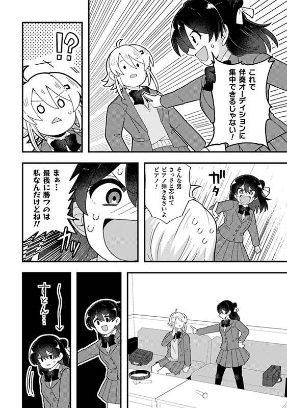 幼き日のピアノコンクールで出会って以来、 どんな大会でも優勝する天音と、 その天才にいつも一歩及ばずな沙織。 いつか絶対、天音を認めさせて優勝する―― そう夢見てきた沙織だったが、 天音は「高校に入ったらピアノをやめる」と なんの気もなしに言い放つのであった…。 不器用な二人の少女が奏でる青春ストーリー、読切52ページ!