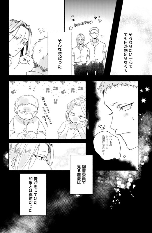 過去の思い出から友達を作るのが苦手な龍夏。そんな中夏休みの図書委員をヤンキーの美春とやることになる。